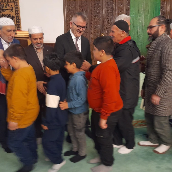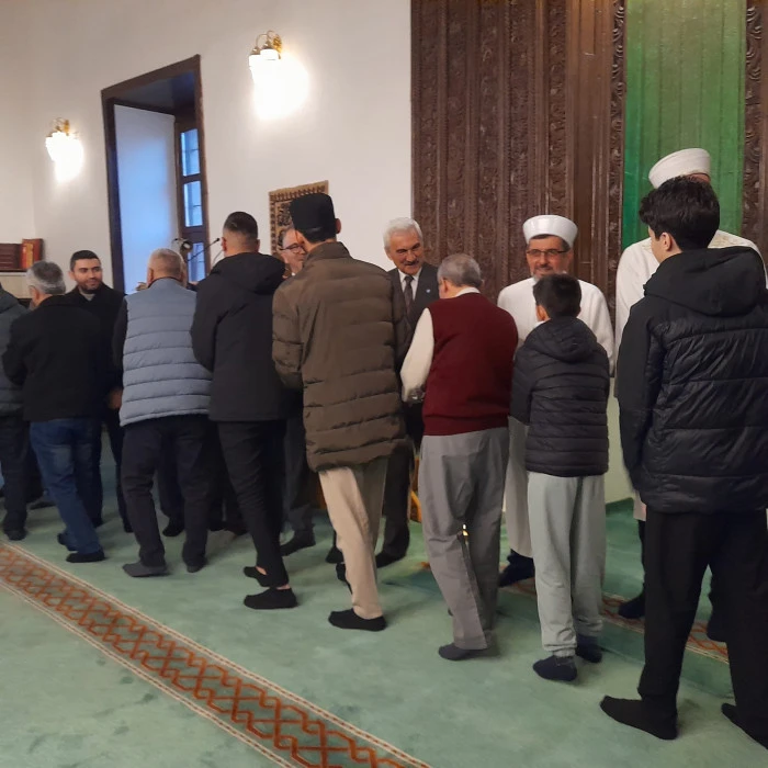 Bayram namazı sonrası camide bir araya gelen vatandaşlar, birbirleriyle bayramlaşılarak birlik ve beraberlik mesajı verildi.
