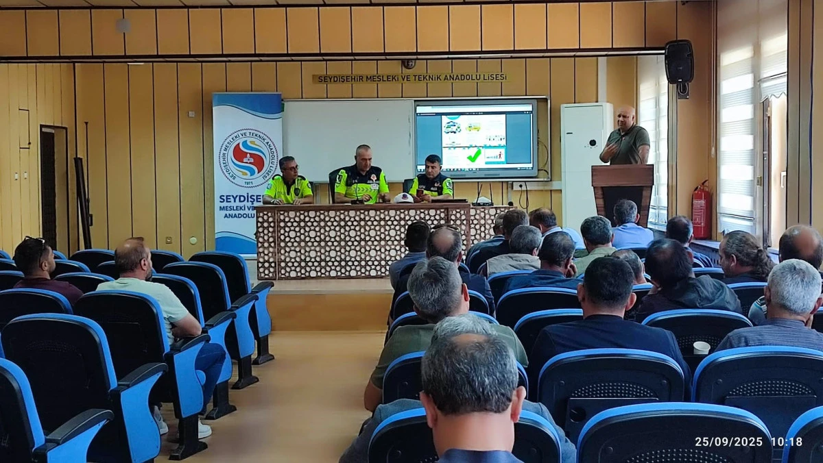Seydişehir Mesleki ve Teknik Anadolu Lisesinde, 2025-2026 Eğitim Öğretim Yılı Taşımalı Eğitim kapsamında ve özel servis hizmeti sunan şoför ve rehber personele yönelik, İlçe Emniyet Müdürlüğü ve İlçe Jandarma Komutanlığı personeli tarafından bilgilendirme eğitimi düzenlendi.