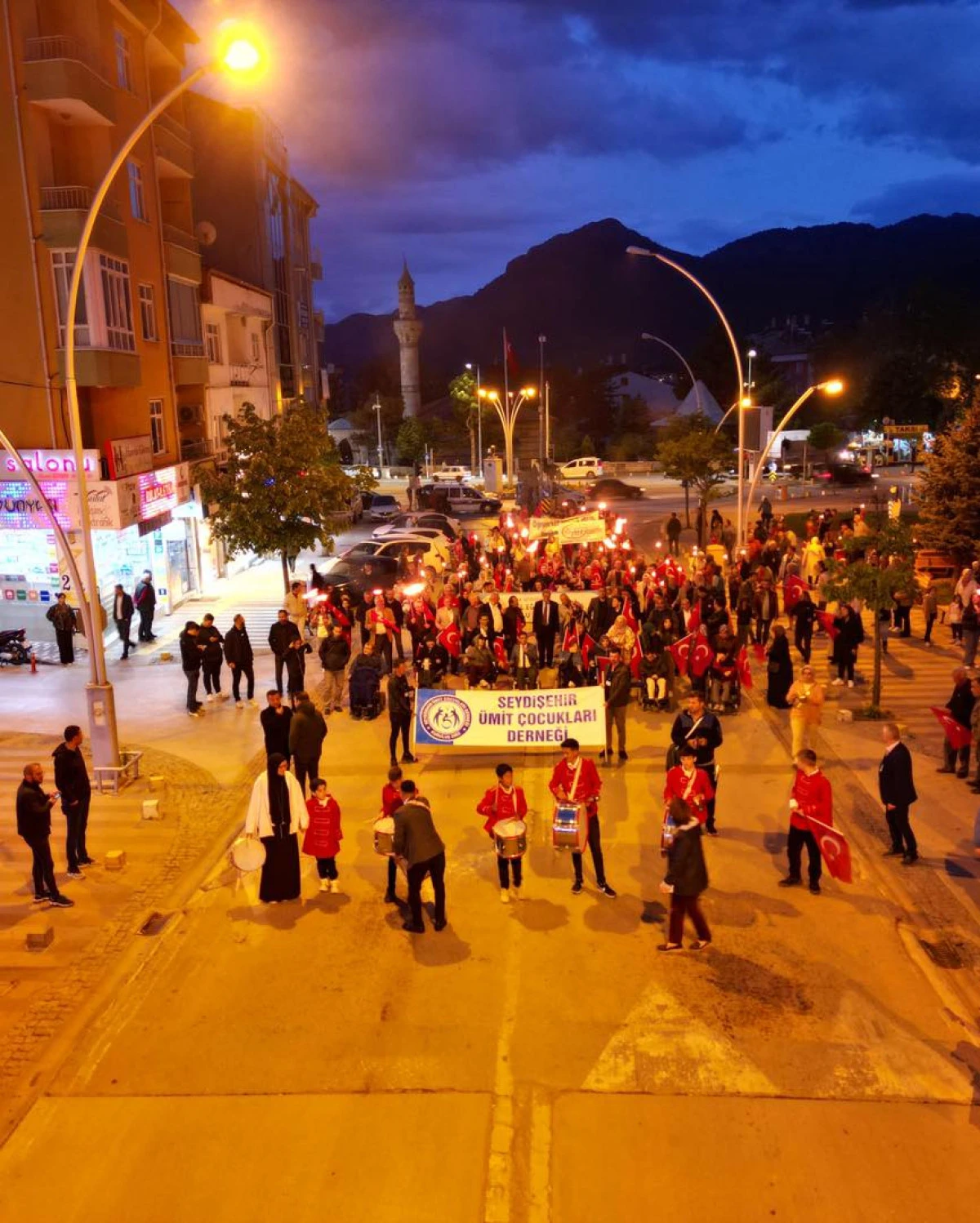Belediye önündeki Milli irade meydanından dernek yararına düzenlenen kermes’ten sonra akşam saatlerinde organize edilen fener alayı ve eğlence programı büyük ilgi gördü.