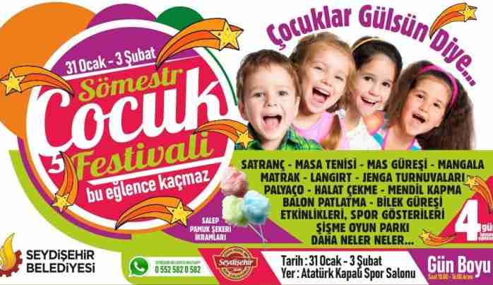 Festival Seydişehir Atatürk Kapalı Spor Salonu’nda, 31 Ocak Perşembe saat 12.00 da başlayacak. Etkinlik 1-3 Şubat tarihlerinde saat 10.00/16.00 arası devam edecektir. Program açılışı 1 Şubat Cuma günü saat:14:30 da yapılacak. Festival yerine, Kaymakamlık Binası ve 15 Temmuz Milli İrade Meydanı önünden, Perşembe günü saat 12.00 ve 14.00 da, diğer günler 10.00, 12.00 ve 14.00 saatlerinde araç kaldırılacaktır. Tüm çocuklar ve aileleri davetlidir.