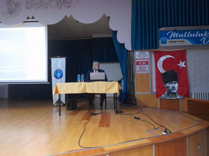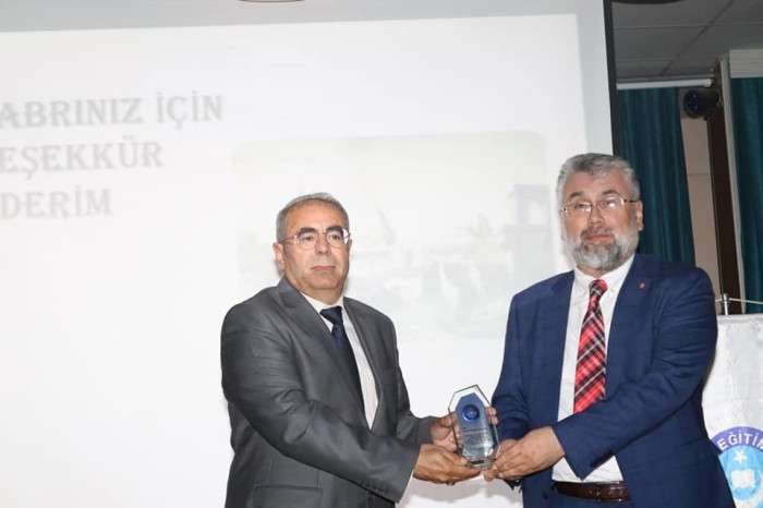 Program sonunda katılımcıların sorularını cevaplandıran Prof. Dr. Güngör Karauğuz’a Türk Eğitim-Sen Seydişehir İlçe Temsilcisi Hasan Hüseyin Kılınçer plaket takdim etti.