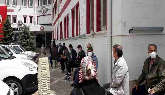 Emlak Çevre temizlik ilam ve reklam vergi ödemelerinin son günü olması nedeniyle ve sosyal mesafeye uyulduğundan Belediye önünde uzun kuyruklar oluştu.