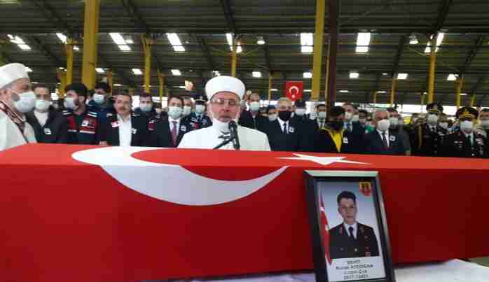 Siirt’in Pervari ilçsinde operasyona giderken askeri aracın uçurumdan yuvarlanması sonucu şehit olan Uzman Çavuş Burak Aydoğan’ın cenaze namazı kapalı Pazar yerinde kılındı.