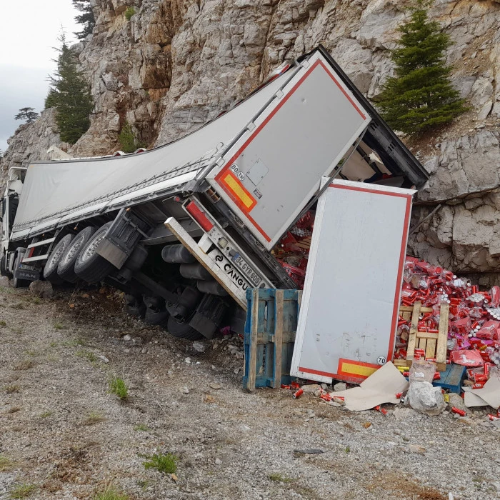Seydişehir Antalya Yolunda Kola Yüklü Kamyon Devrildi