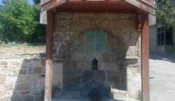 Derviş Ali Ağa Seyyid Harun Caminin güneyinde Ulukapı diye anılan şehrin inşa edilen ilk kapısının yanına bugün halen ayakta olan mahalle çeşmesini yaptırmıştır. Çeşme kitabesine göre 1833 (H.1249) tarihinde inşa olunmuştur.Çeşme ,3.27 m. genişliğinde, 3.43 m. yüksekliğinde, 1.20 m. derinliğindedir . Sivri kemeri iki taş ayağa oturur. Cephenin üst kısmı üç sıra silmeyle sonlandırılmıştır. Ayaklarda üzengi seviyesinde de silme yer alır. Kemerin altındaki aynalıkta, mermer üzerine talik yazı ile yazılmış sekiz satırlık kitabesi yer alır. Kitabenin zemini yeşil renktedir, yazılar ise altın yaldız rengindedir. Kitabenin altında tas koymak için yapılan taslık nişi ve musluğu görülür. Çeşmenin önüne sonradan, iki ahşap direğe oturan üç alınlıklı bir sundurma çatı eklenmiştir. Çatı aynı zamanda çeşmenin de üzerini örtecek şekilde tasarlanmıştır. Çeşme duvarı ile üçgen alınlık arasını desteklemek için konsol yerleştirilmiştir. Sundurmanın tavanı da ahşap çıtalarla kaplanmıştır. Şair Rüşdi tarafından talik yazı ile yazılan kitabesi şöyledir: