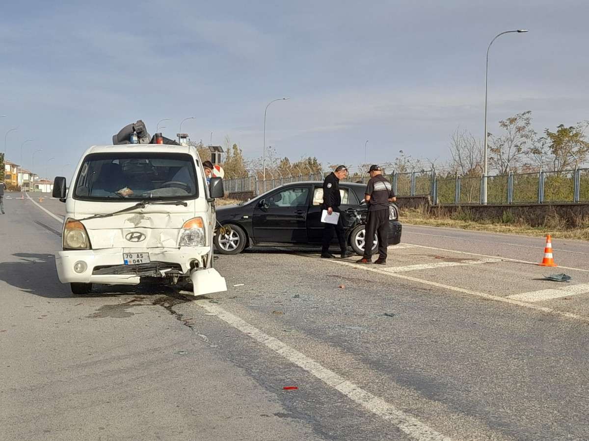 Salih Ö. (66) idaresindeki 06 ED 5185 plakalı otomobil, Şenol Ö. idaresindeki 70 AS 041 plakalı pikapla Saadetler Mahallesi T tipi Kapalı cezaevi önünde 09.10 sularında çarpıştı.