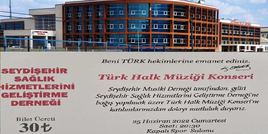 Seydişehir Musiki Derneği tarafından, geliri Seydişehir Sağlık Hizmetlerini Geliştirme Derneği’ne bağışlanmak üzere 25 Haziran Cumartesi saat 20:30 da Kapalı Spor Salonunda ‘Türk Halk Müziği Konseri’ düzenlenecek.
